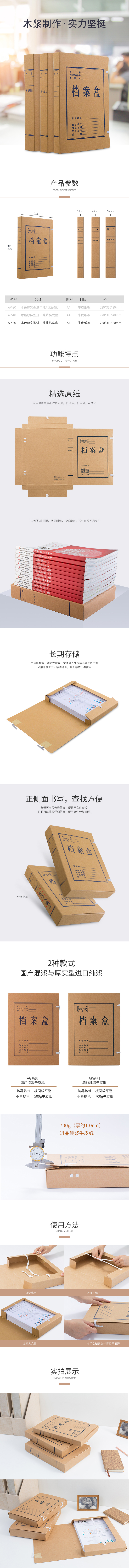 商品名称:齐心 AP-50 本色厚实型进口纯浆档案盒 A4/50mm 10个/套