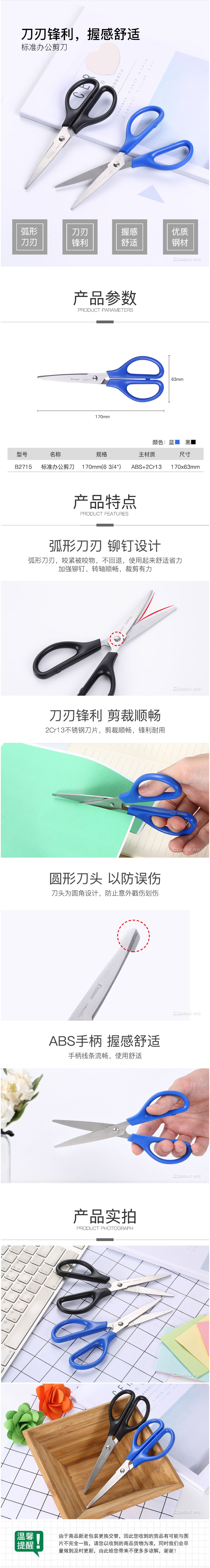 齐心 B2715 中号标准办公剪刀 170mm
