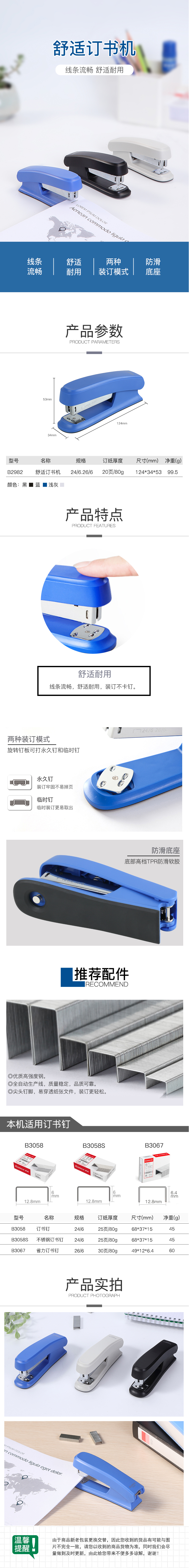 商品名称:齐心 B2982 舒适防滑订书机 12#