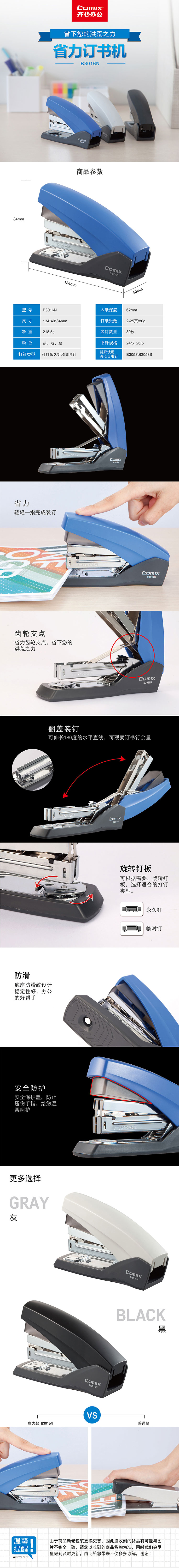 商品名称:齐心 B3016N 省力订书机
