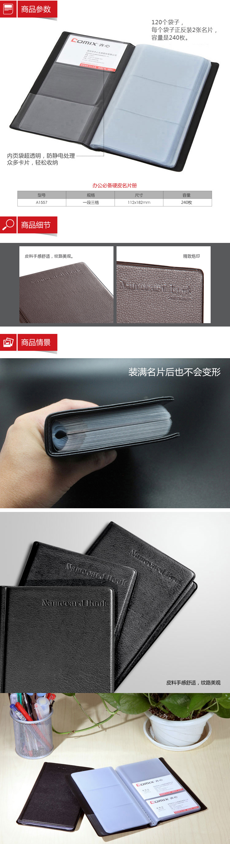 商品名称:齐心 A1557 办公必备硬皮名片册 240枚