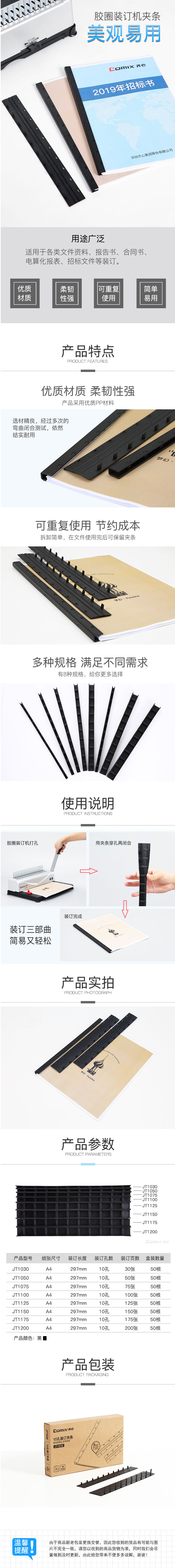 商品名称:齐心 JT1100 装订夹条 10mm宽 1SET=50PCS