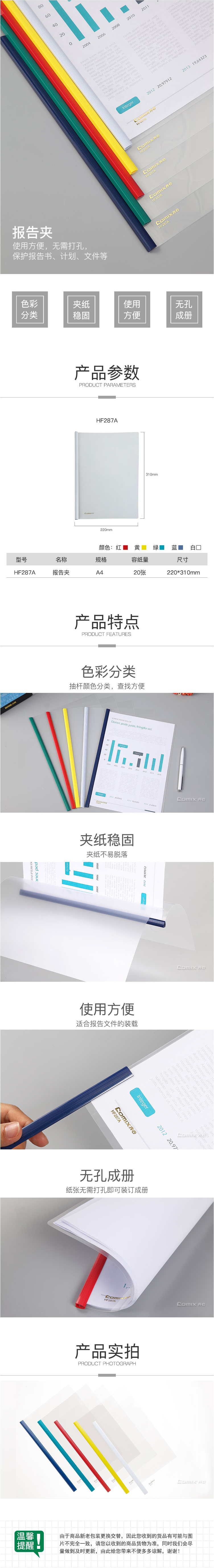 商品名称:齐心 HF287A 超省钱报告夹 A4 抽杆式抽杆夹 20张 五个套装