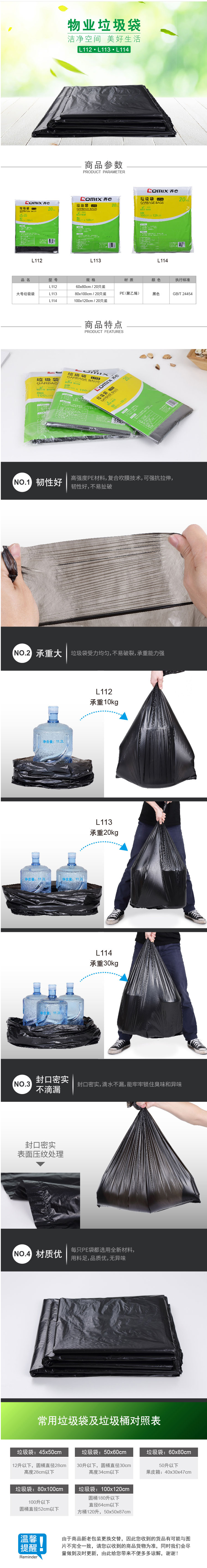 商品名称:齐心 L114 大号垃圾袋100*120cm 20个装