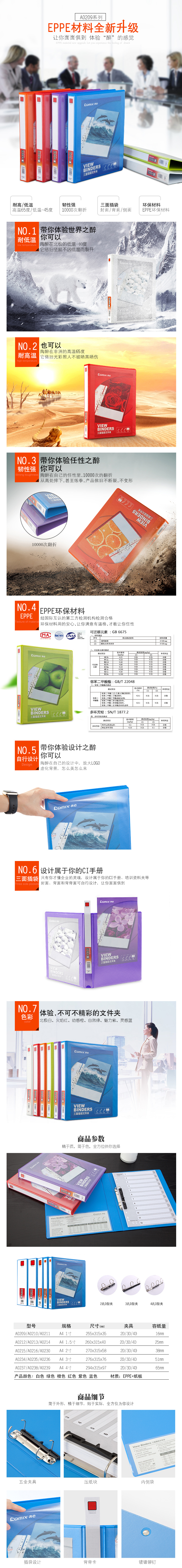 商品名称:齐心 A0236 易展示 美式三面插袋文件夹 A4 3寸4孔D型夹
