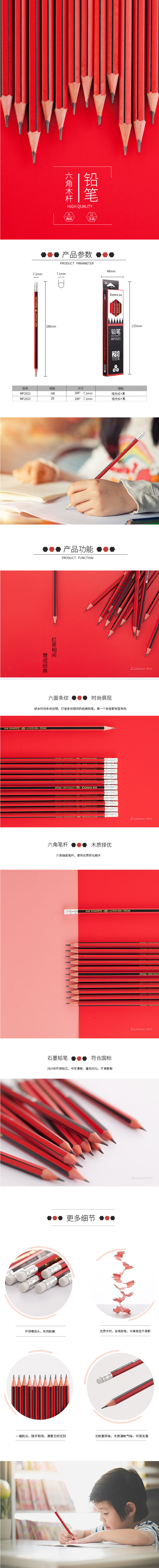 商品名称:齐心 MP2023 六角木杆铅笔 (12支装) 抽条 带皮头 2B