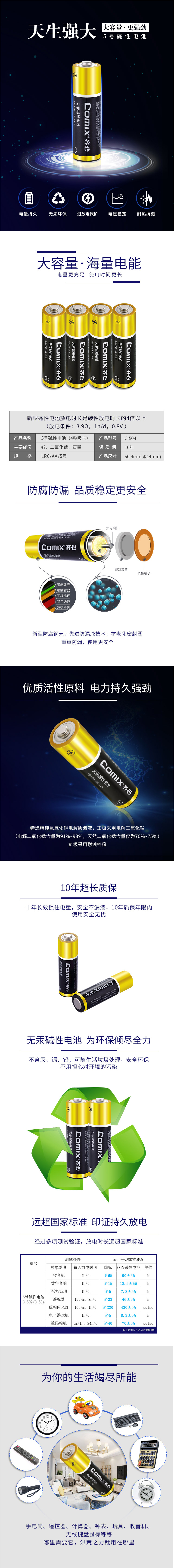 商品名称:齐心 C-504 5号碱性电池 (4个装)