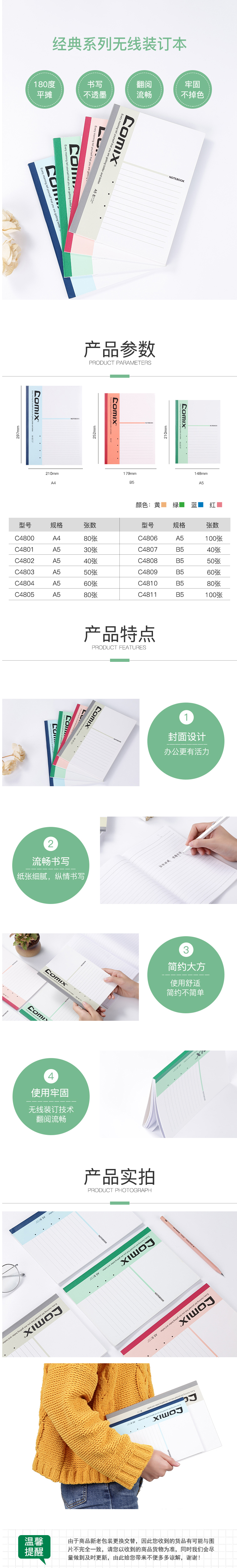 商品名称:齐心 C4802 经典系列无线装订本 A5 40张笔记本软面抄软抄本