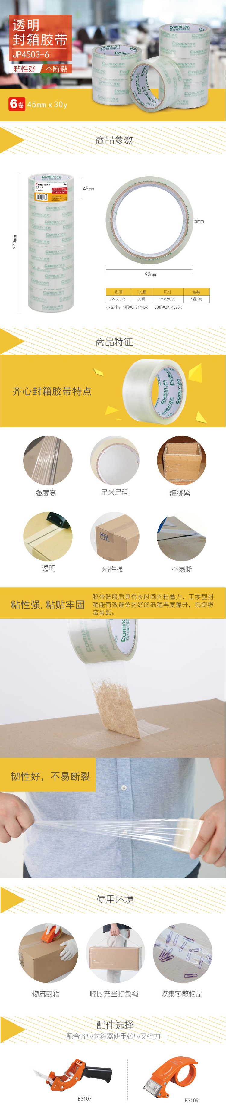 商品名称:齐心 JP4503-6 封箱胶带 6卷装