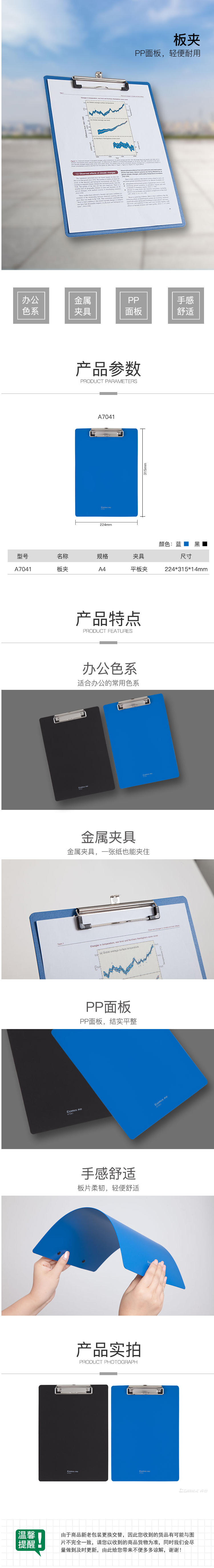 商品名称:齐心 A7041 经济型PP平板夹 A4