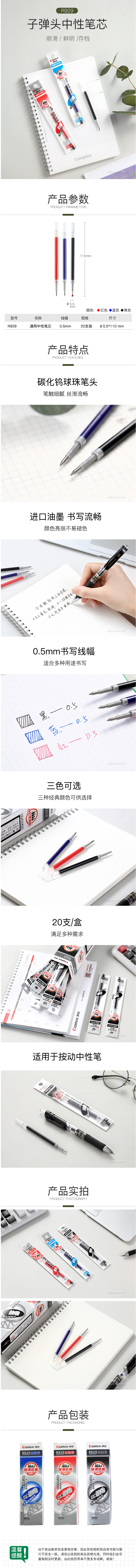 商品名称:齐心 R929 中性笔芯替芯0.5mm 经典按动笔芯