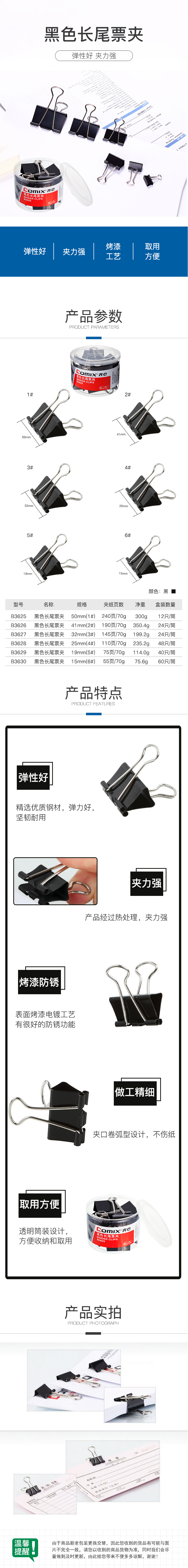 商品名称:齐心 B3627黑色长尾夹票夹 3# 32mm 24只/筒