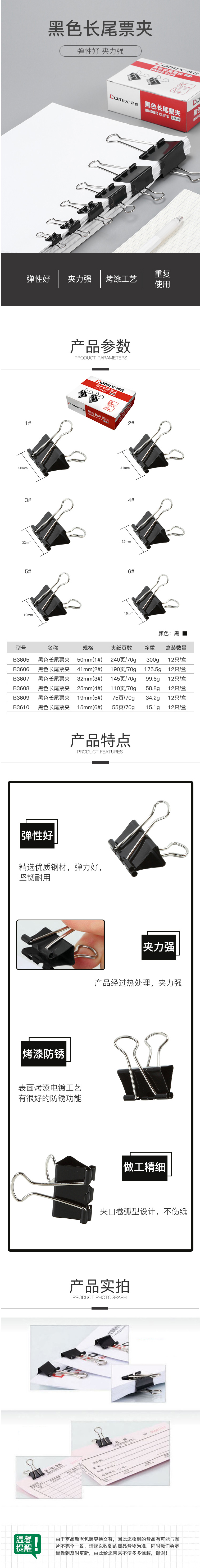 商品名称:齐心 B3609黑色长尾夹票夹 5# 19mm 12只/盒