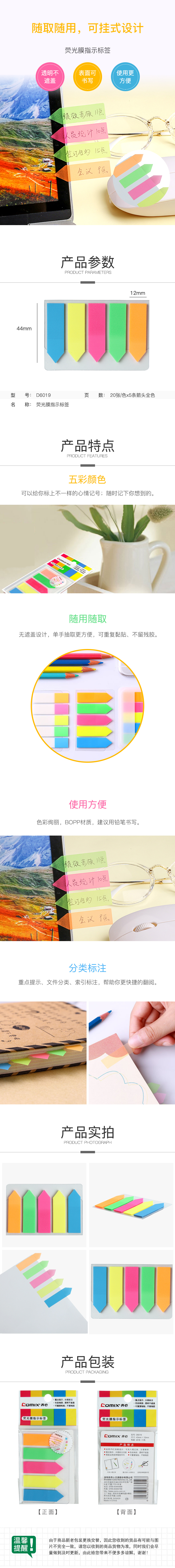 商品名称:齐心 D6019 荧彩系列标签易事贴 X5色箭头告示贴