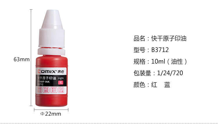 商品名称:齐心 B3712 快干原子印油 10ml