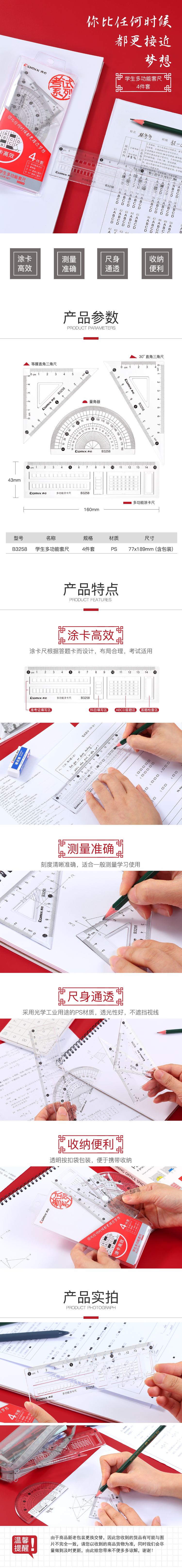 商品名称:齐心 B3258 学生多功能套尺
