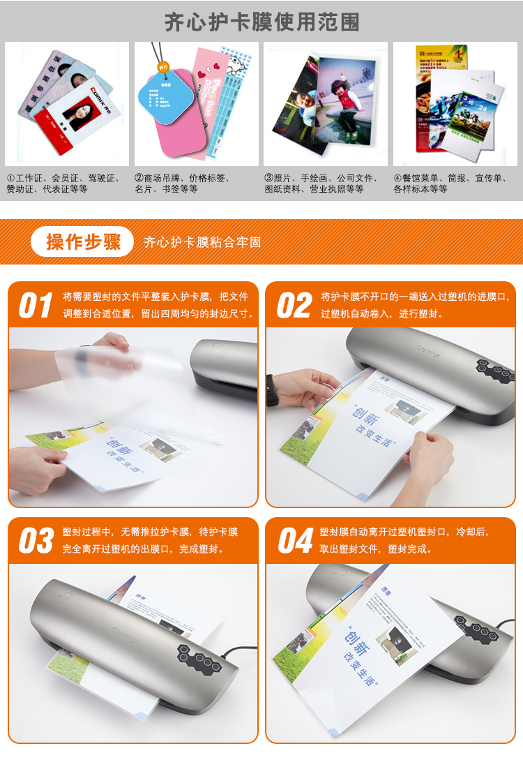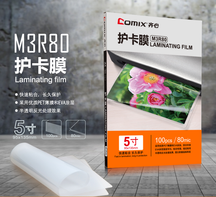 商品名称:齐心 M3R80 内销透明高清护卡膜 95*135mm*80mic