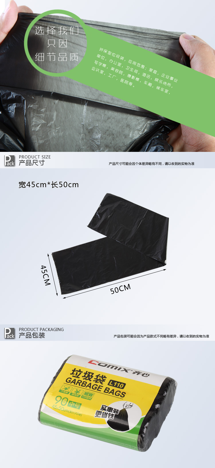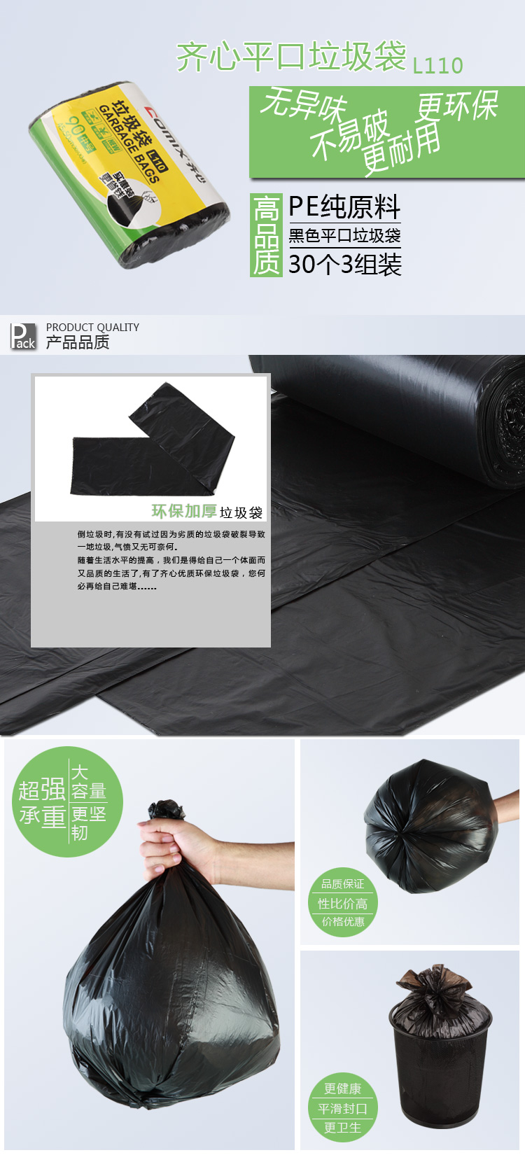 商品名称:齐心 L110 垃圾袋30个三组装45*50cm*30个*3卷