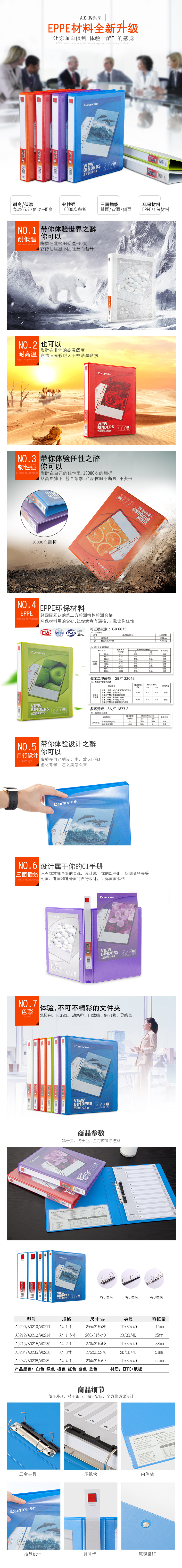 商品名称:齐心 A0209 易展示 美式三面插袋文件夹 A4 1寸2孔D型夹
