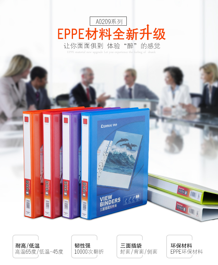 商品名称:齐心 A0215 易展示 美式三面插袋文件夹 A4 2寸2孔D型夹