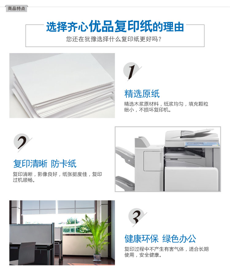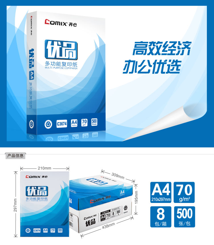 商品名称:齐心 C3674-8 优品复印纸打印纸 A4 70g
