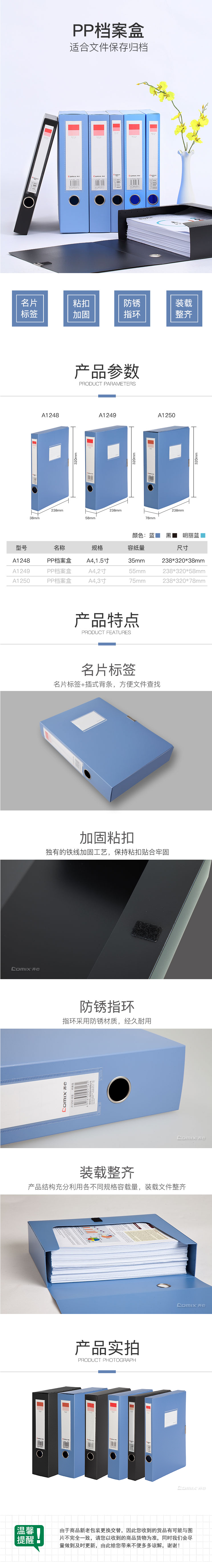 商品名称:齐心 A1248 超省钱PP档案盒 A4 35MM