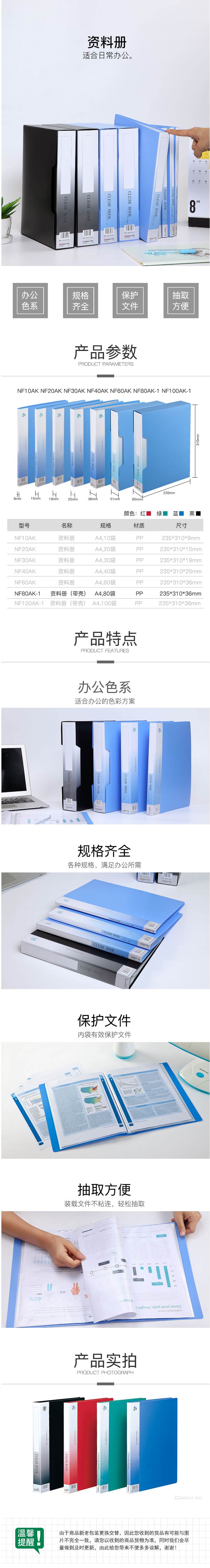 商品名称:齐心 NF80AK-1 办公必备大容量资料册 A4 80袋外壳